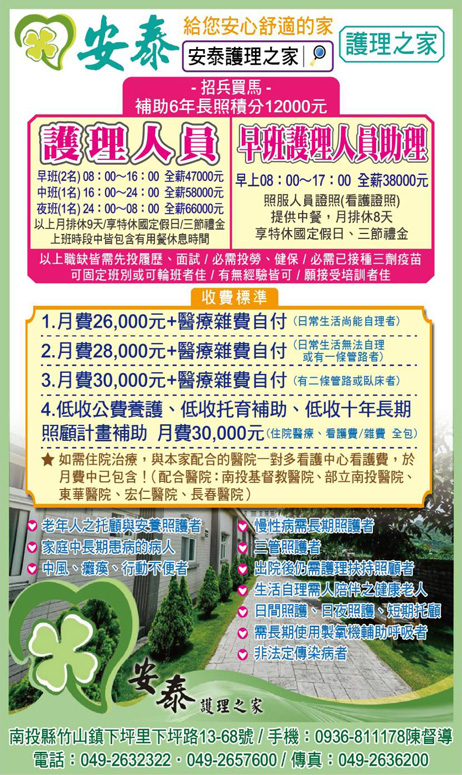 從2026年1月1日起,安泰護理之家收費標準已更新!